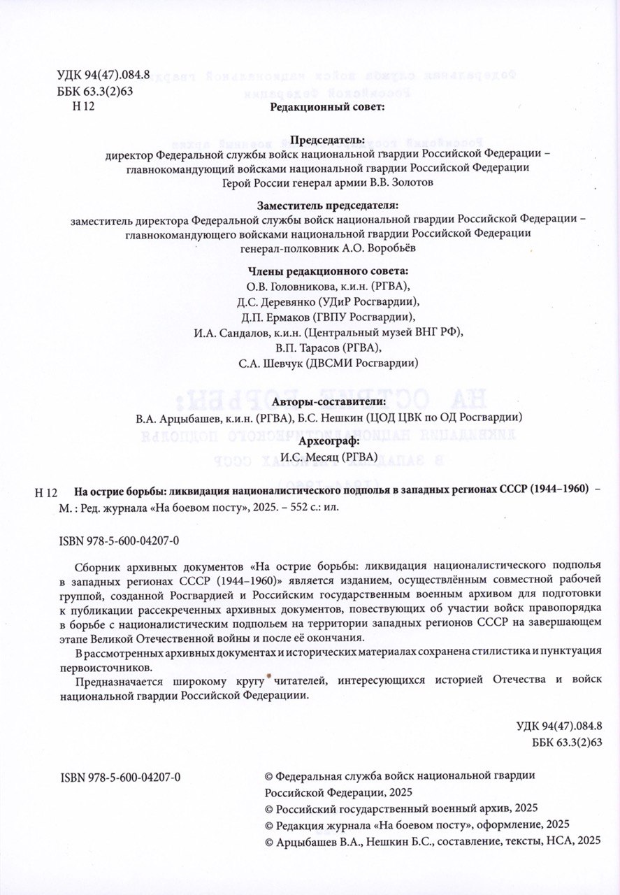 Данное издание приурочено к празднованию 80-летия Победы в Великой Отечественной войне и осуществлено совместной рабочей группой сотрудников Федеральной службы войск национальной гвардии Российской Федерации (Росгвардии) и Российского государственного военного архива.