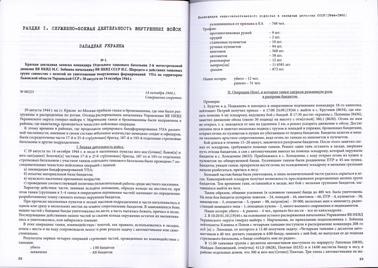 Открывается том историческим предисловием, составленным главным специалистом РГВА, к.и.н. В.А. Арцыбашевым, в котором подробно рассказывается о том, какие именно националистические подполья действовали на территории СССР, об их структуре, зарубежных покровителях и пр.