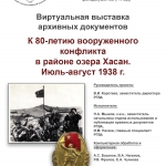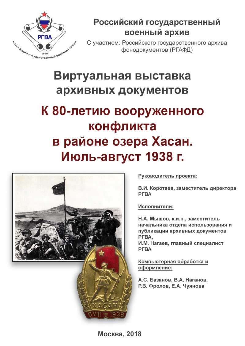 РГВА представляет историко-документальную виртуальную выставку «К 80-летию вооруженного конфликта в районе озера Хасан. Июль – август 1938 г.». [2]